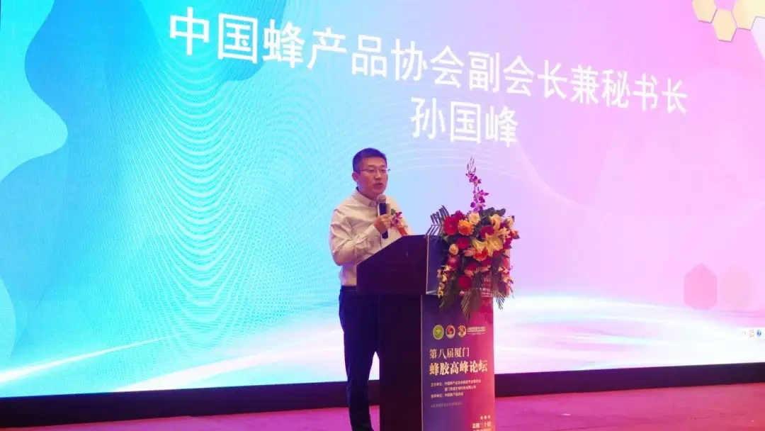 中國蜂產(chǎn)品協(xié)會副會長兼秘書長孫國峰在論壇發(fā)言