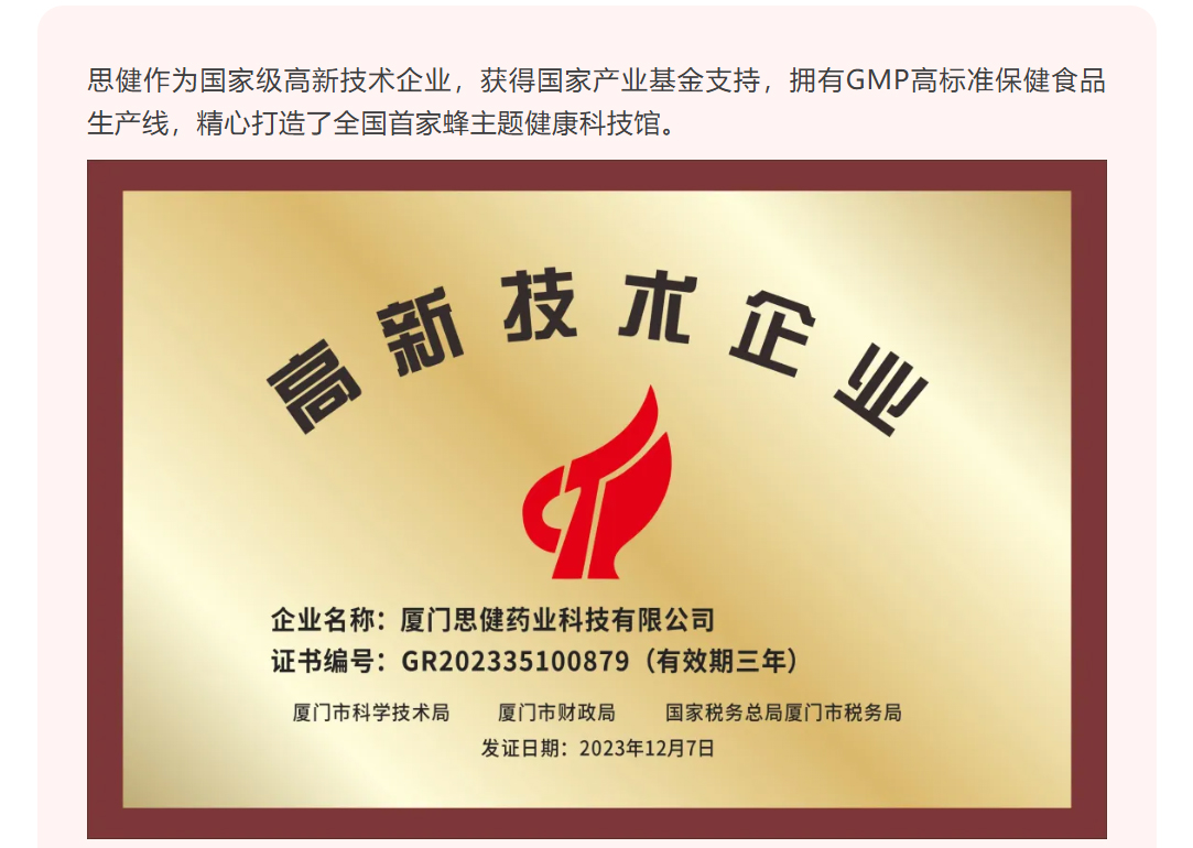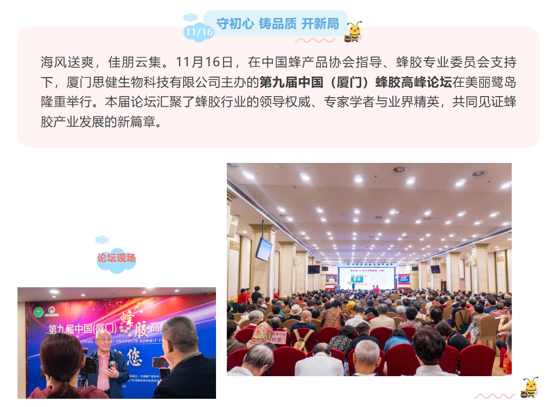 思健生物科技誠(chéng)邀您共赴廈門出席第九屆中國(guó)(廈門)蜂膠高峰論壇:與蜂業(yè)權(quán)威面對(duì)面,洞見蜂膠國(guó)際新未來